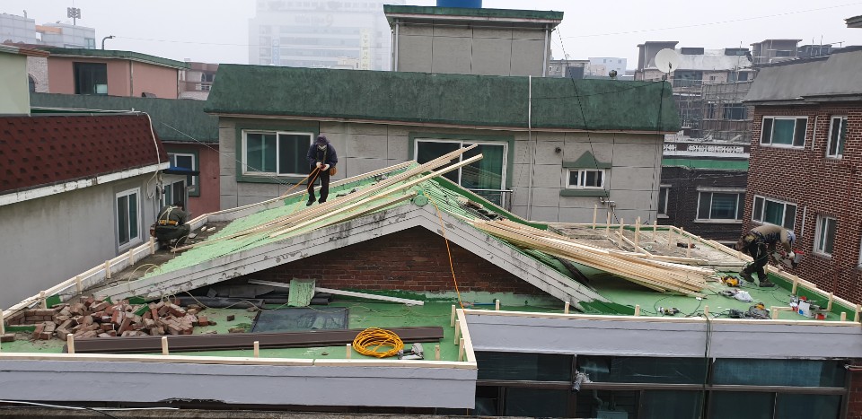 수원시 율전동. 슬라브지붕을 칼라강판으로 개량공사.