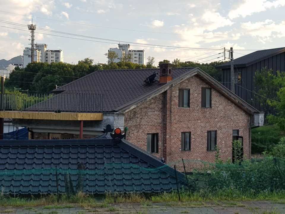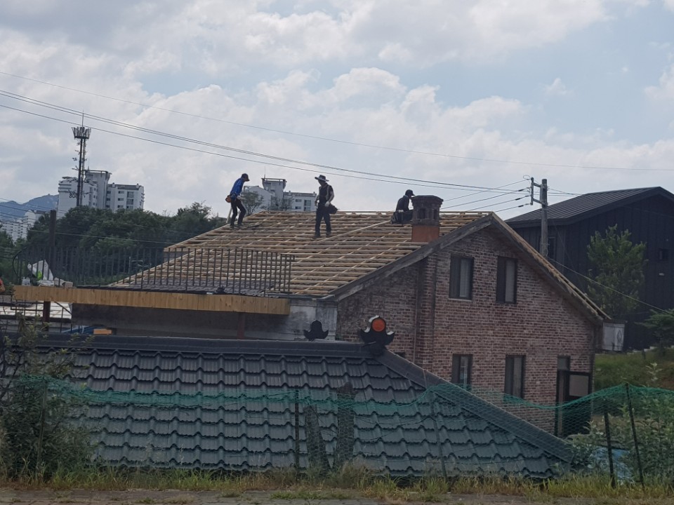 의정부시 녹양동. 기와를 철거하지 않고 기와위에 목재로 하지작업후 칼라강판으로 개량공사