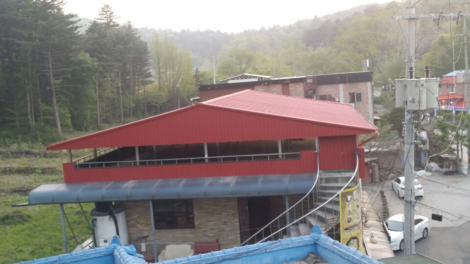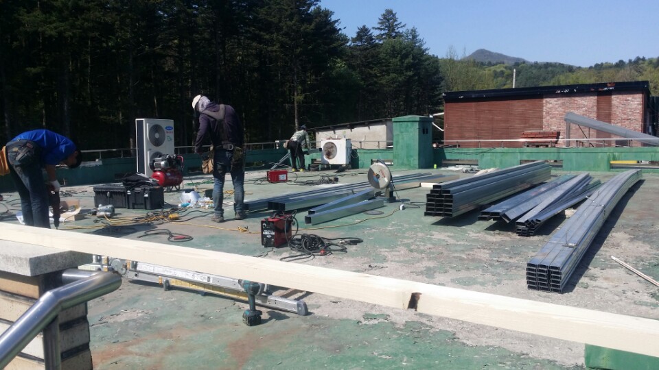 남양주시 진접읍의 상가 슬라브지붕을 옥상사용이 가능하도록 철골로 하지작업후 칼라강판으로 지붕개량