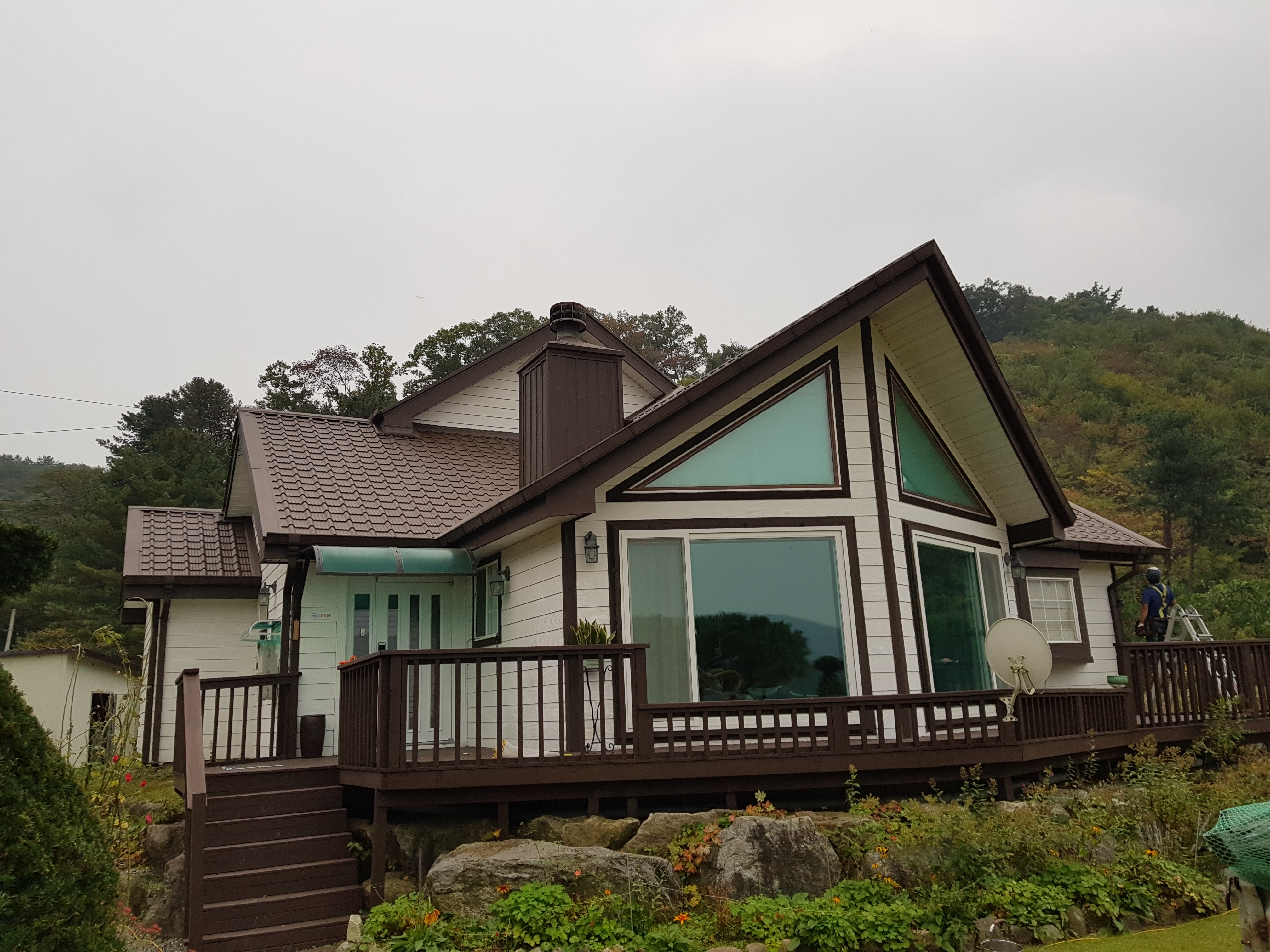양평 서후리 아스팔트 싱글지붕이 노후돼 기와형 칼라강판으로 지붕개량