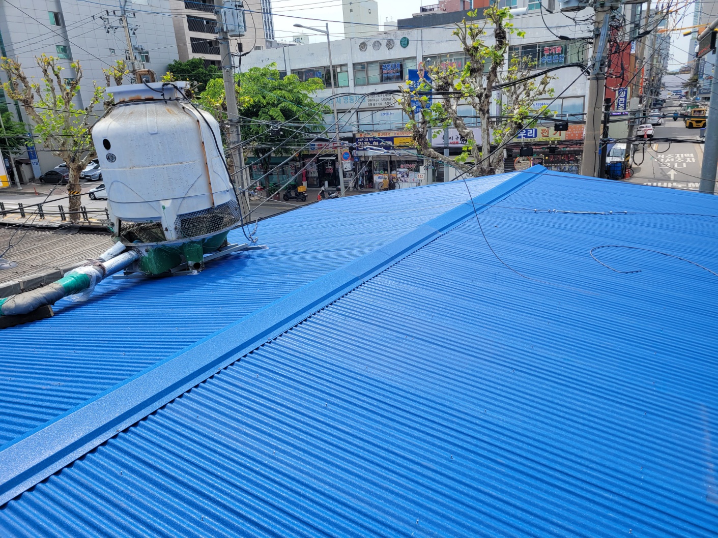 서울시 양평동. 기존의 V250 판넬지붕을 내구성이 강한 아연도칼라강판 슬레이트골로 개량공사함.