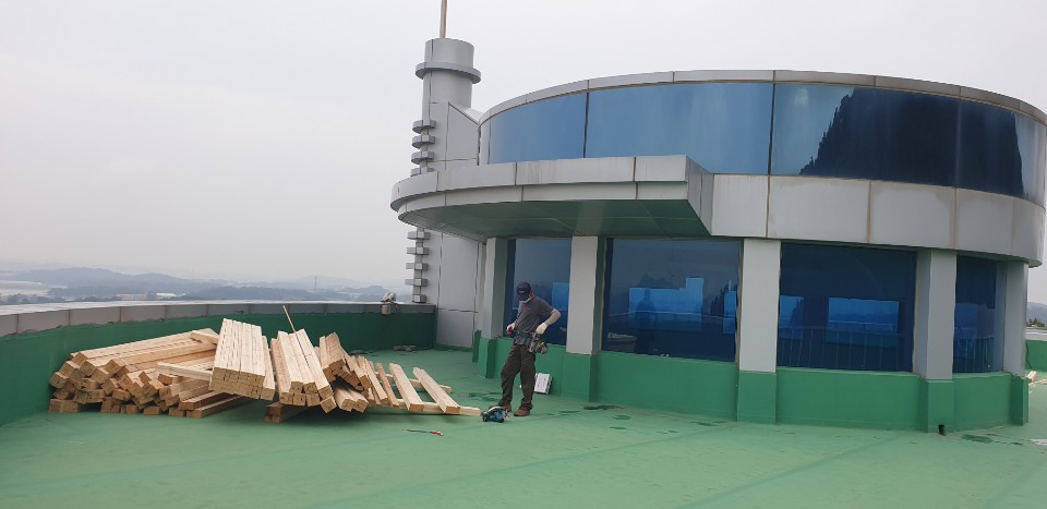 평택시 청북읍에 위치한 추모공원으로 슬라브바닥이 노후돼 옥상활용이 가능하도록 바닥시트형으로 개량공사함.