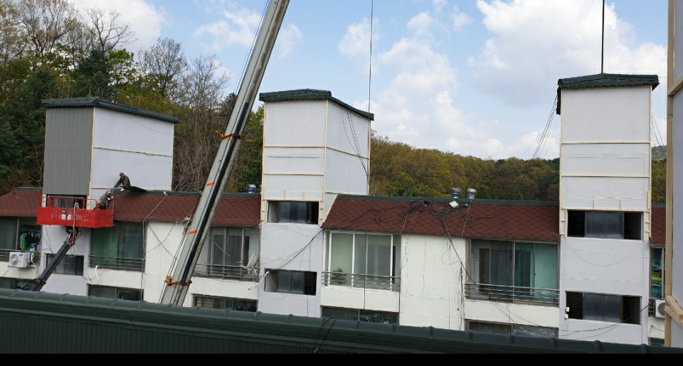 경기도 남양주시 진접읍. 아파트 물탱크 옥탑을 V250징크로 시공한 사례.
